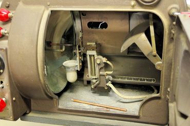 Merv donated this projector to the museum when he changed to digital projection equipment in 2012. A very informative interview with Merv in which he talks about the differences between mechanical projection of reels of film and digital projection, can be watched on request at the museum. He relates the history of the theatre in Waskesiu and reveals the secret of how he makes and sells the best popcorn.